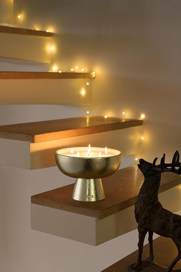 - Discover the allure of Blueme’s Limited Edition Holiday Candle, where luxury meets artistry with a gold-foiled texture inspired by the timeless beauty of Lake Como. Our meticulously handcrafted ceramic vessel on a pedestal is a statement piece designed to elevate your holiday décor and beyond. Celebrate the season with Blueme’s elegance and zen, and let our Holiday Candle bring a festive atmosphere filled with warmth and tranquility.